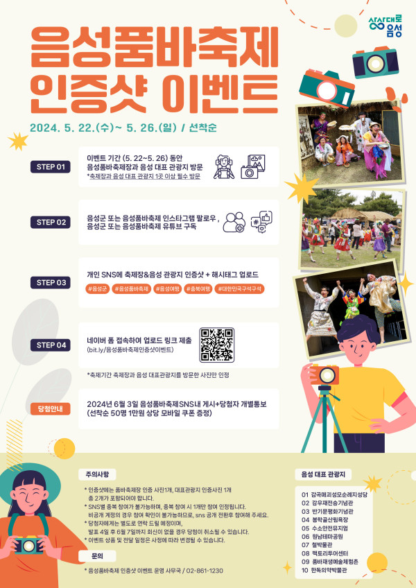 *축제기간 축제장과 음성 대표관광지를 방문한 사진만 인정