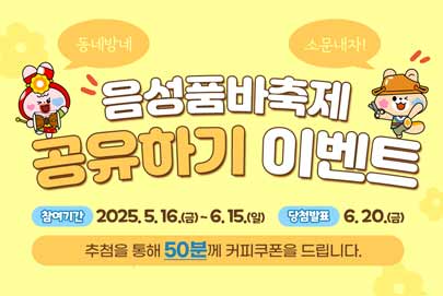 - 이전글2025년 제26회 음성품바축제 퀴즈이벤트 25.05.16