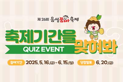- 다음글2025년 제26회 음성품바축제 공유하기 이벤트 25.05.16